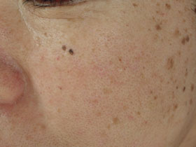 25歳以前の女性のシミには、レーザーあるいはフォトフェイシャルできれいにできます。しかし、25歳以降とくに30歳以降のシミでは、レーザーあるいはフォトフェイシャル治療後3~4週間は幸せなのですが、4週後より色素沈着を生じてきます。この焼き付いたシミを『レーザー・フォトフェイシャルでつくったシミ(医原性色素沈着)』といい、通常の治療では解決できにくい特徴があります。